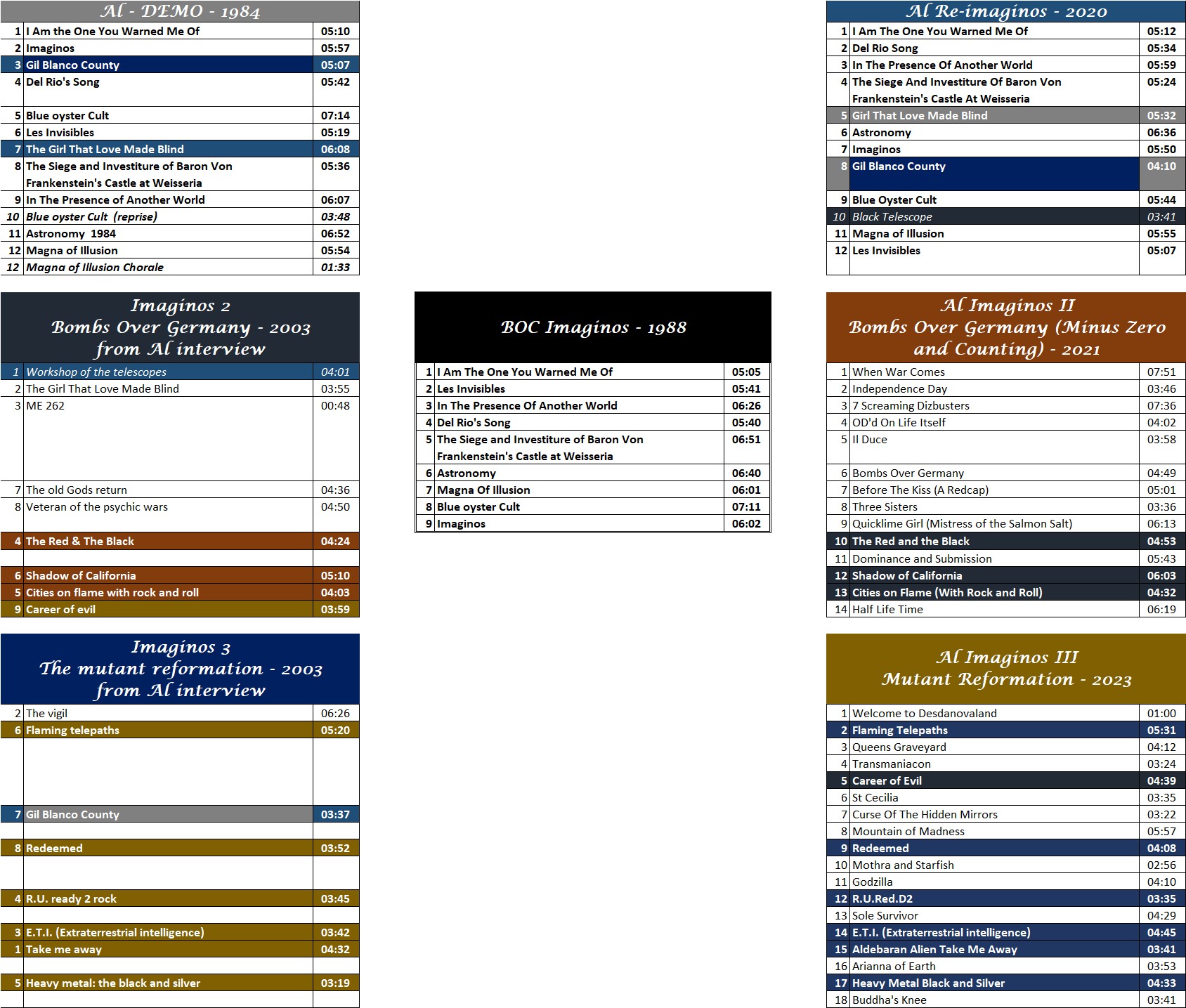 County", "The Girl That Love Made Blind", "Blue Oyster Cult Reprise",