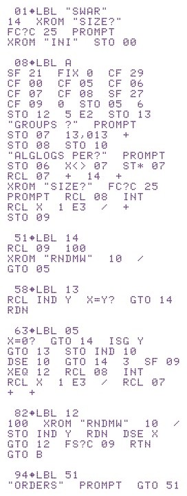 SWAR from HP-41 game module